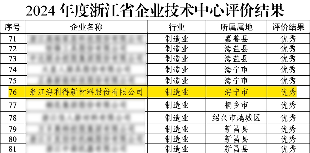 近日,浙江省經(jīng)濟(jì)和信息化廳、浙江省財(cái)政廳、國家稅務(wù)總局浙江省稅務(wù)局和中華人民共和國杭州海關(guān)聯(lián)合公布了制造業(yè)領(lǐng)域2024年度浙江省企業(yè)技術(shù)中心評價(jià)結(jié)果,海利得順利通過復(fù)評,評級等級為優(yōu)秀。